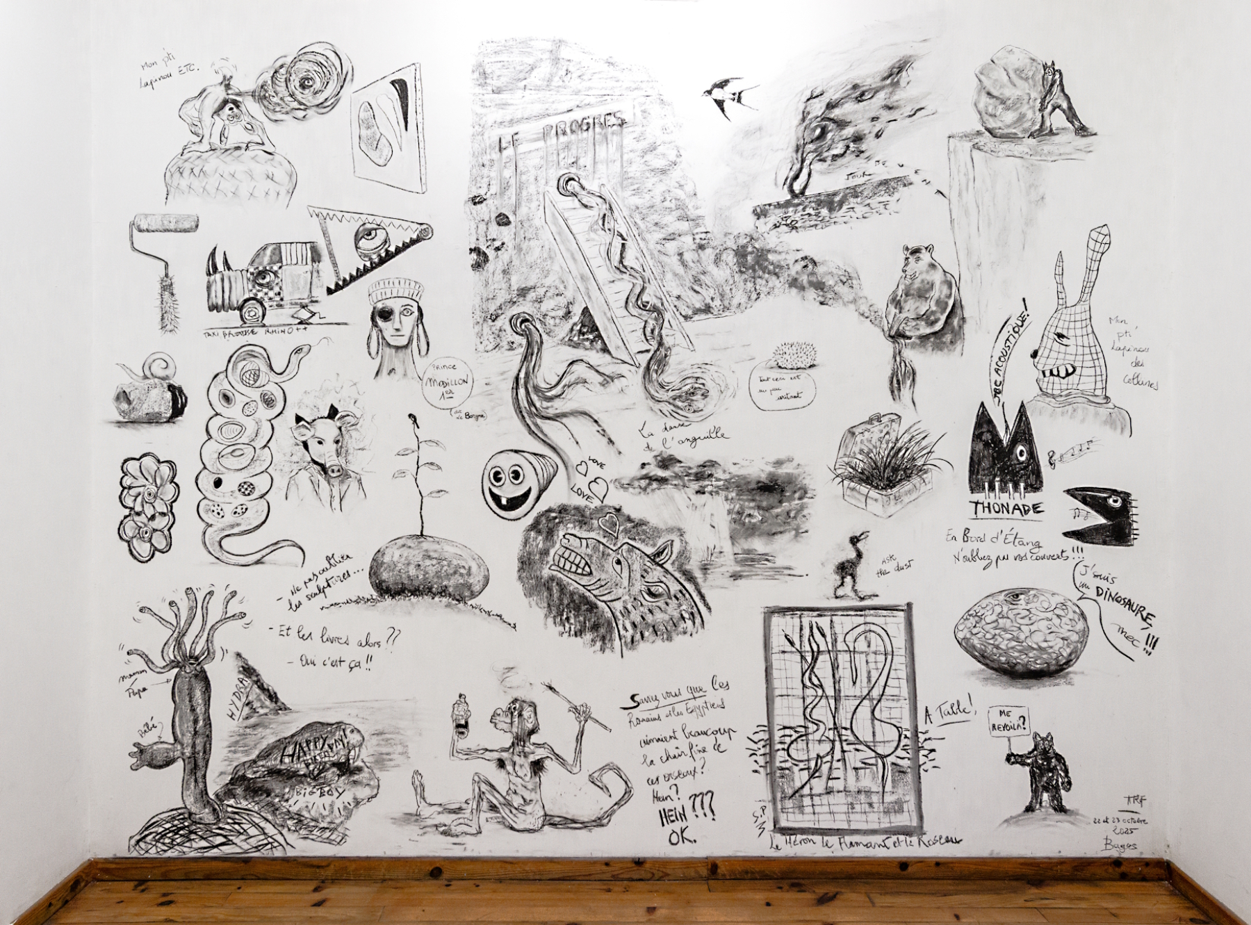 fusain sur cloison peinte